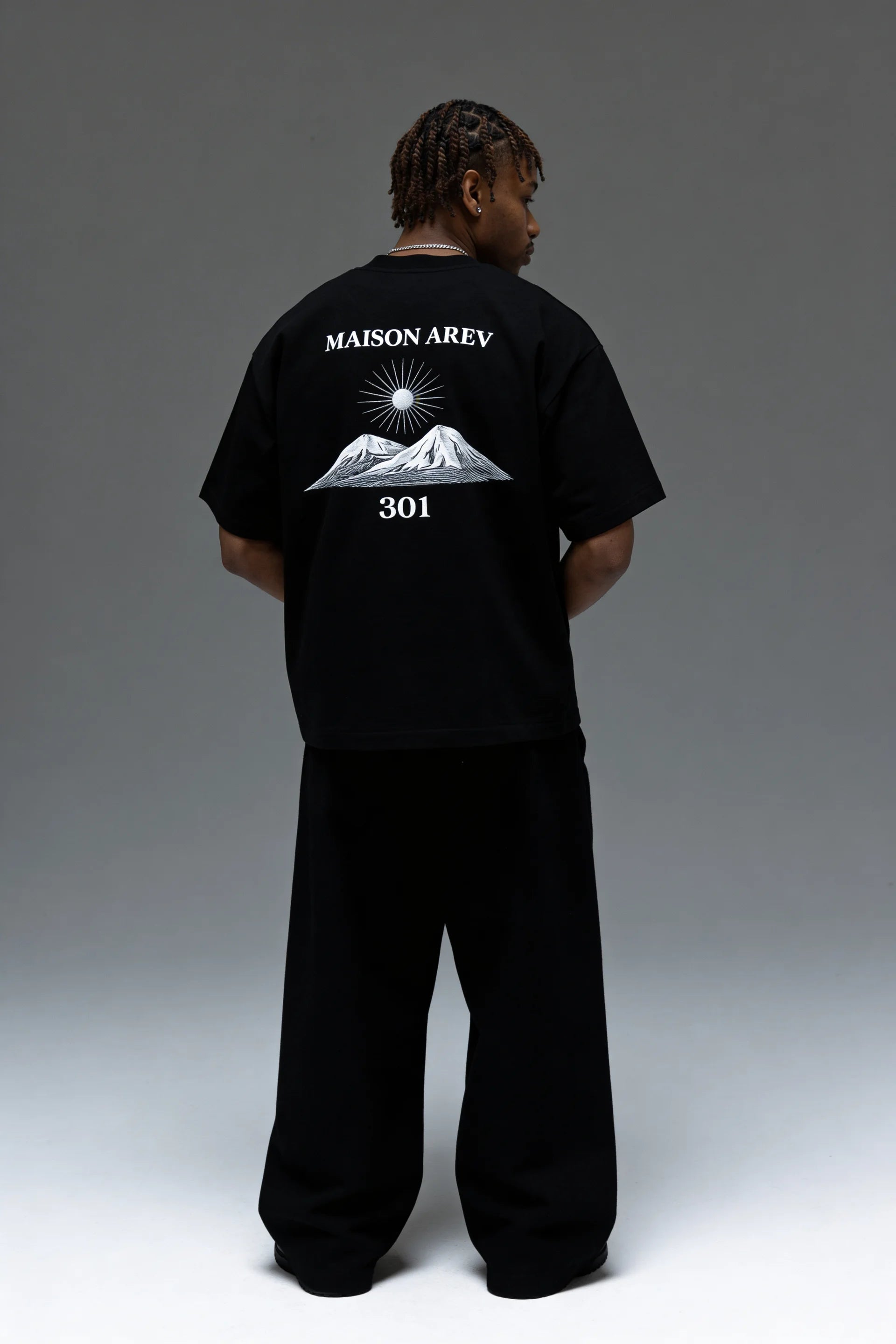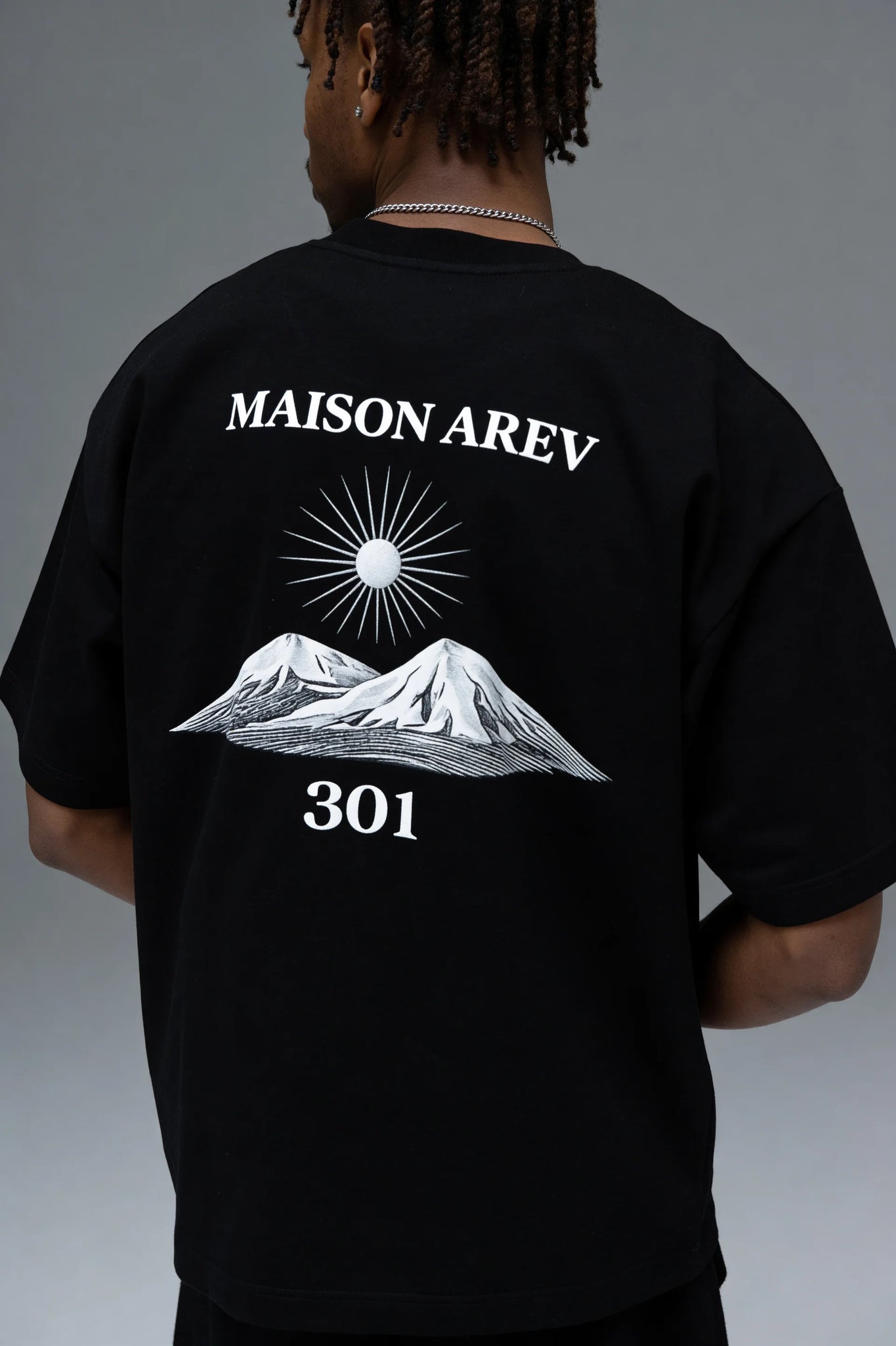 Le Maison Arev "Mont Ararat" T-shirt Oversize Black est un hommage aux neiges éternelles qui couronnent les cimes arméniennes.
